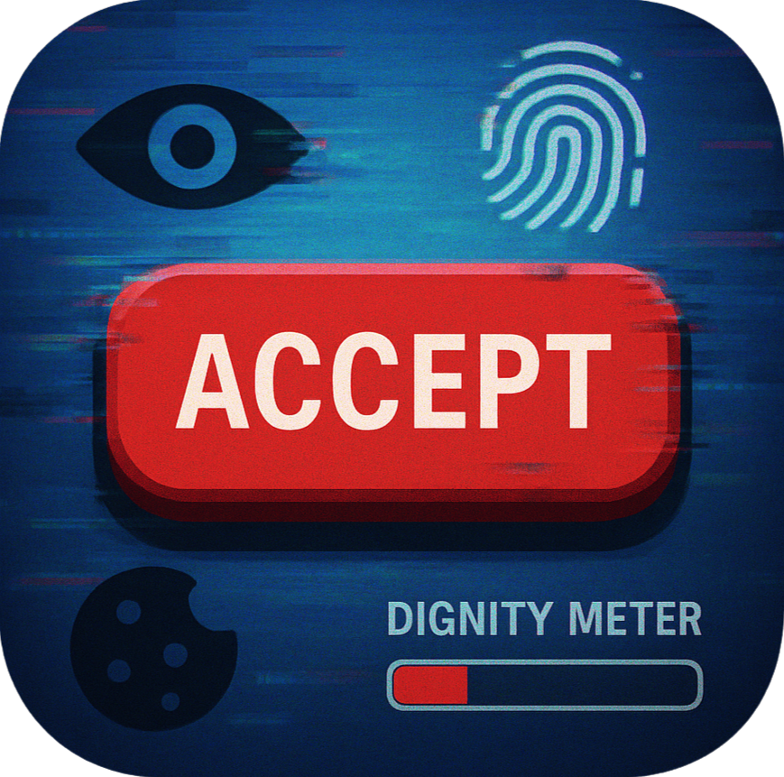Welcome to the grind. In this world, data is currency, and dignity is... negotiable. Start by 'accepting' terms to earn DataBucks. Use them in the Shop for upgrades, but watch your Dignity.